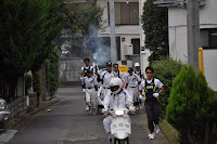 まずは、住宅街を広報車が通り、今日の体育祭の案内および、聖火ランナーが通る旨のアナウンス。